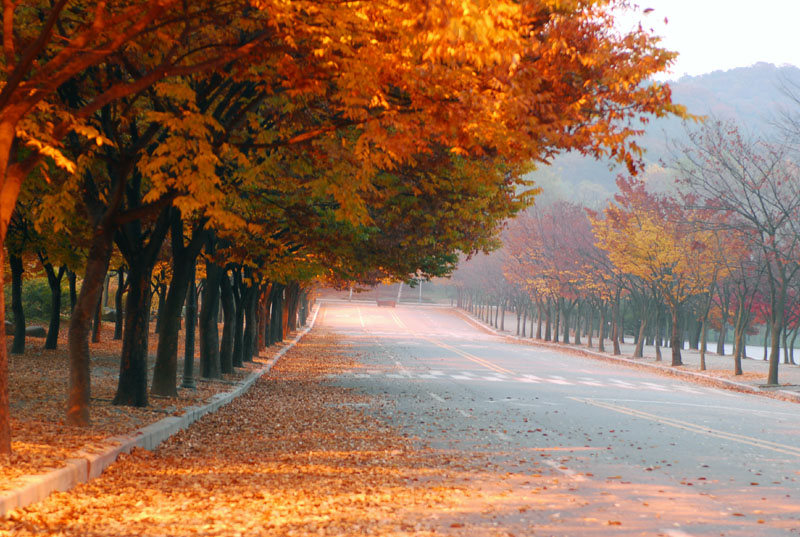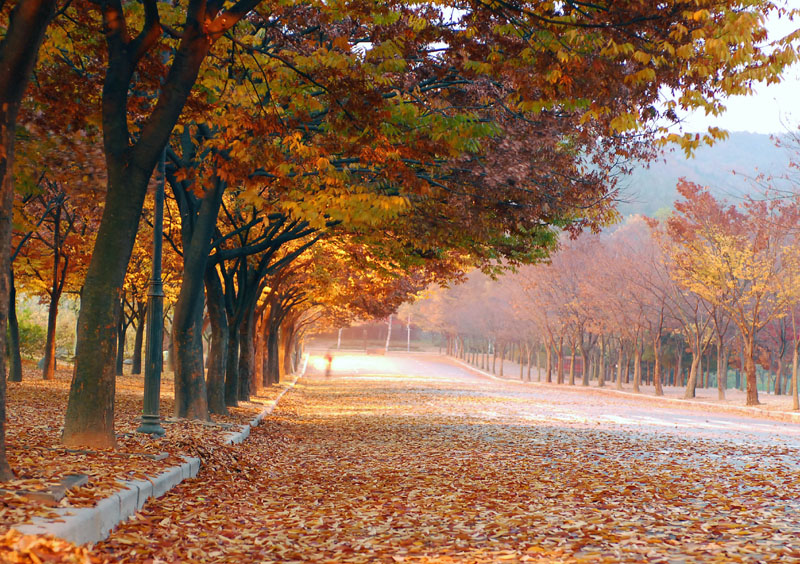 낙엽을 밟고 지나가는 가을의 표정,