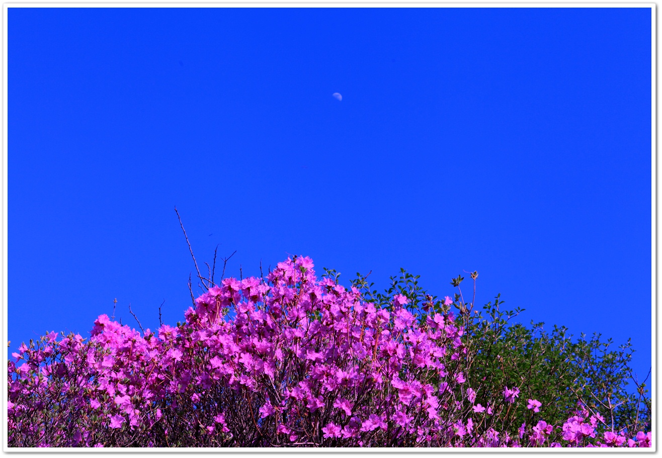 밤도 되기 전에 달님도 꽃구경 나왔네요.