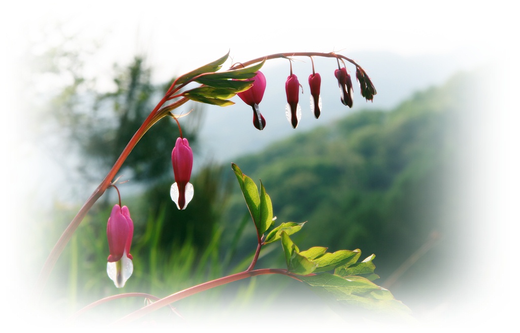 강원도 어느 산골 마을의 어귀에서 홀로 피어 있는 금낭화가