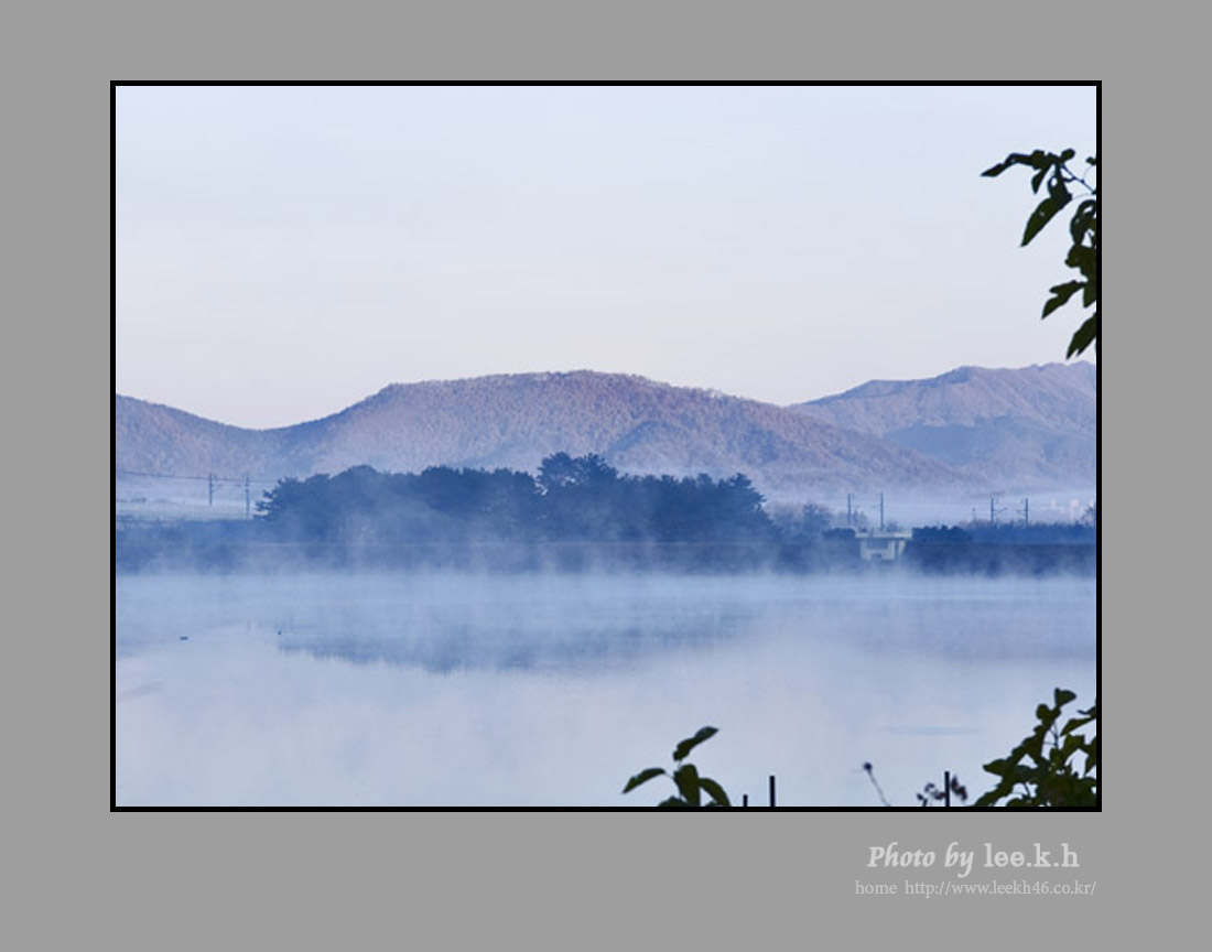 조용한 낚시터의 아침 물안개---