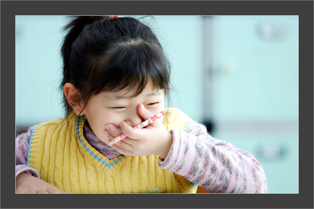 수업시간에 우연하게 미소짓던 모습을 찍게 되었죠.