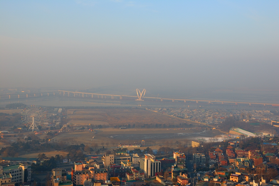 청량산에서 내려다본 모습과 월미공원에서 바라본 모습입니다.
