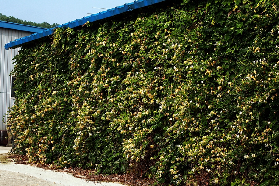돌곶이 마을에 인동초가 뒤덮힌 벽입니다.