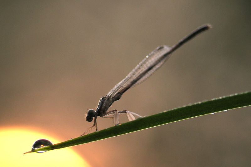 실잠자리와 지나가는 아침 햇살 ,