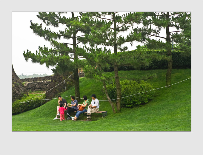 제주 오설록 녹차밭에 나들이 나온 행복한 가족