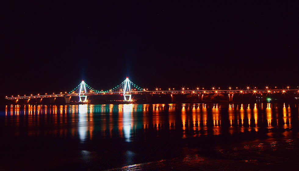 일몰이 멋진 영종대교에오후 9시 45분까지 파란색 조명이 들어옵니다.