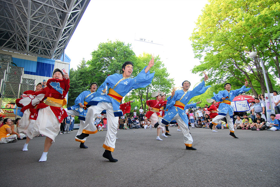 거리 퍼레이드 일본민속댄스공연입니다.