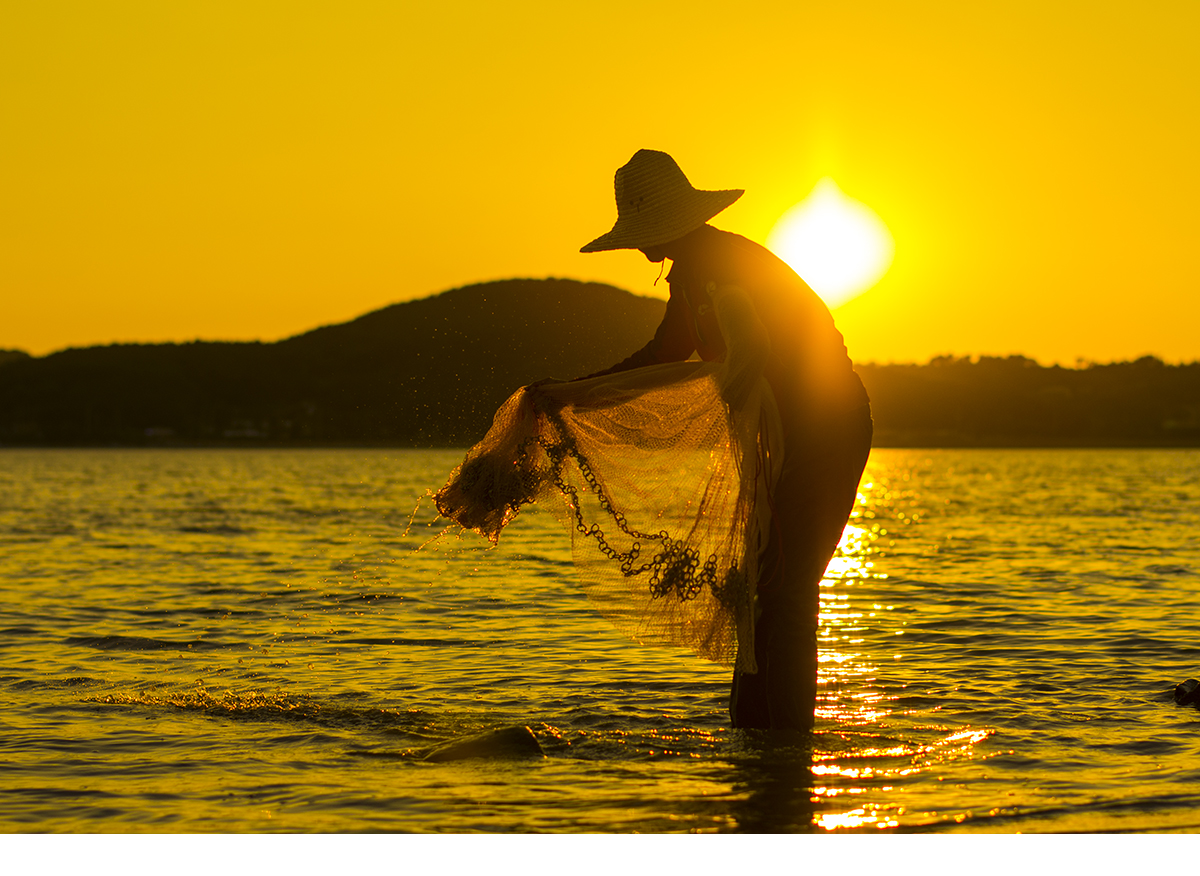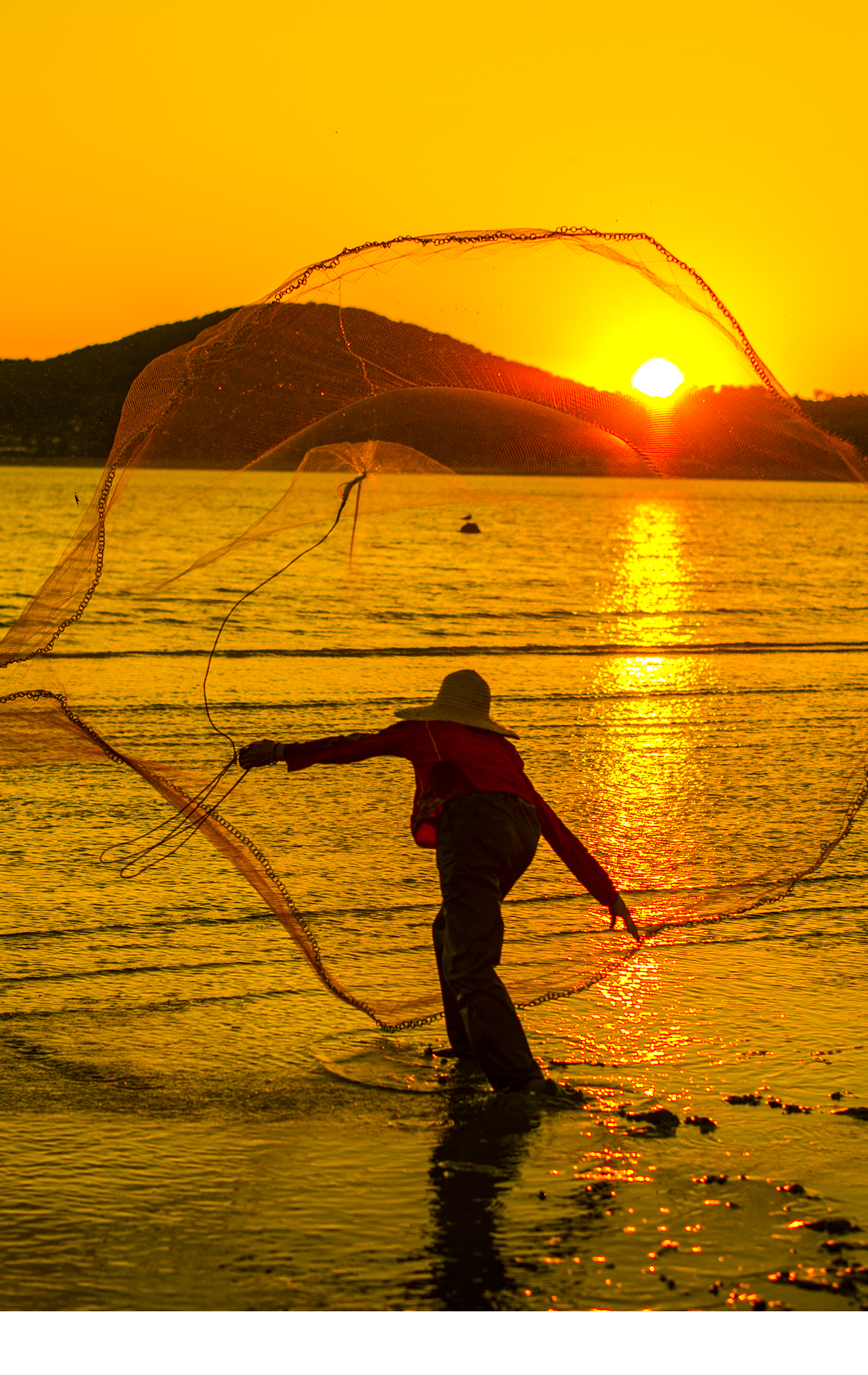 사전에 섭외된 후배와 투망으로 석양을 잡는 컨셉으로