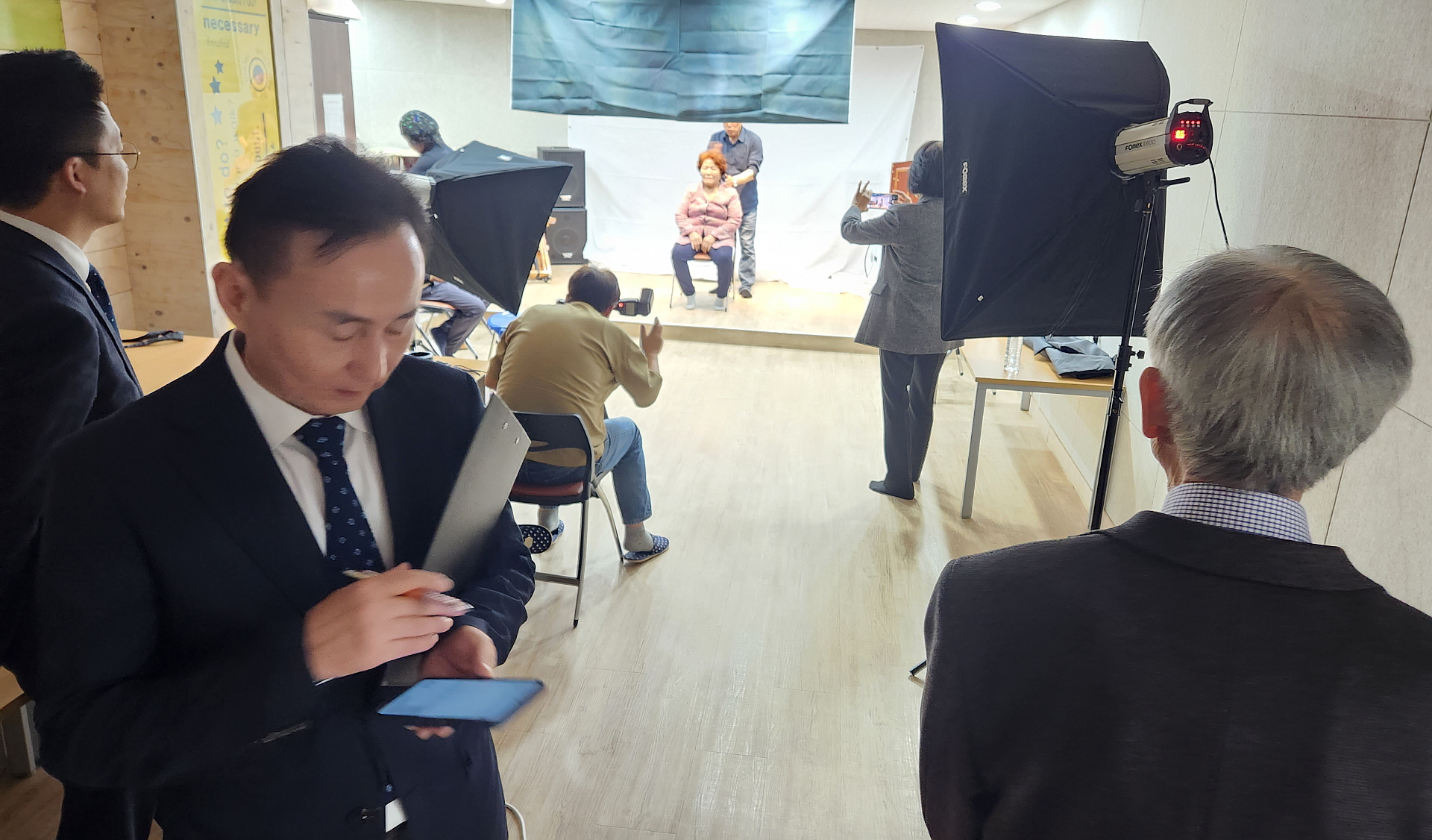 2023. 10. 18. 오후 2시, 인천 서구 가좌2동행정복지센터(동장 이서진)에서 (사)한국디지털사진가협회 인천지부(지부장 김운식) 소속 사진작가 7명이 소외된 어르신 20여 명을 상대로 영정 사진을 찍어 액자를 제공하는 재능기부를 실시했습니다.
