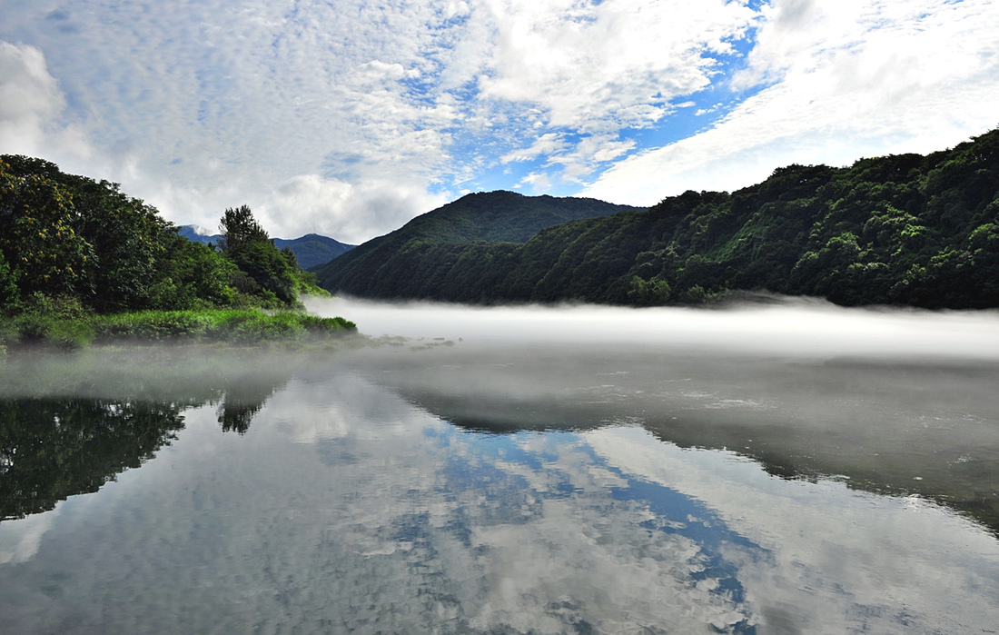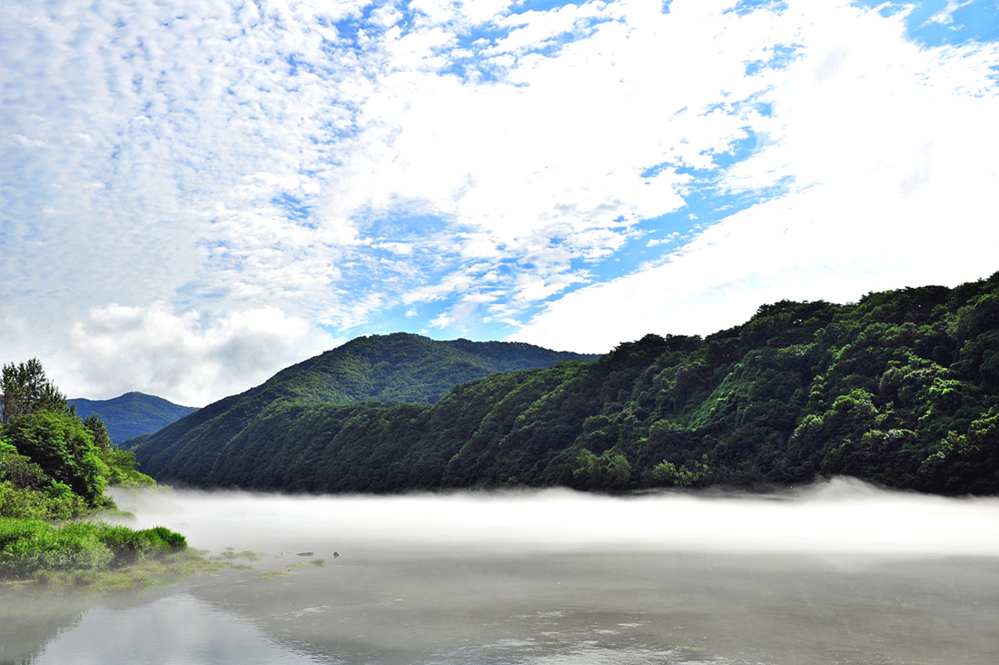 멀리 소양강댐이 보이는 콧구멍 다리에서의 아침...