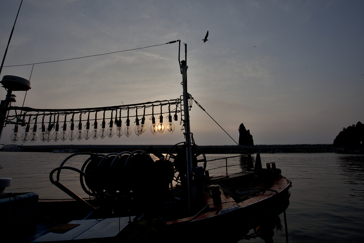 울릉도 저동 항구에서 일출빛을 전구에 담다..