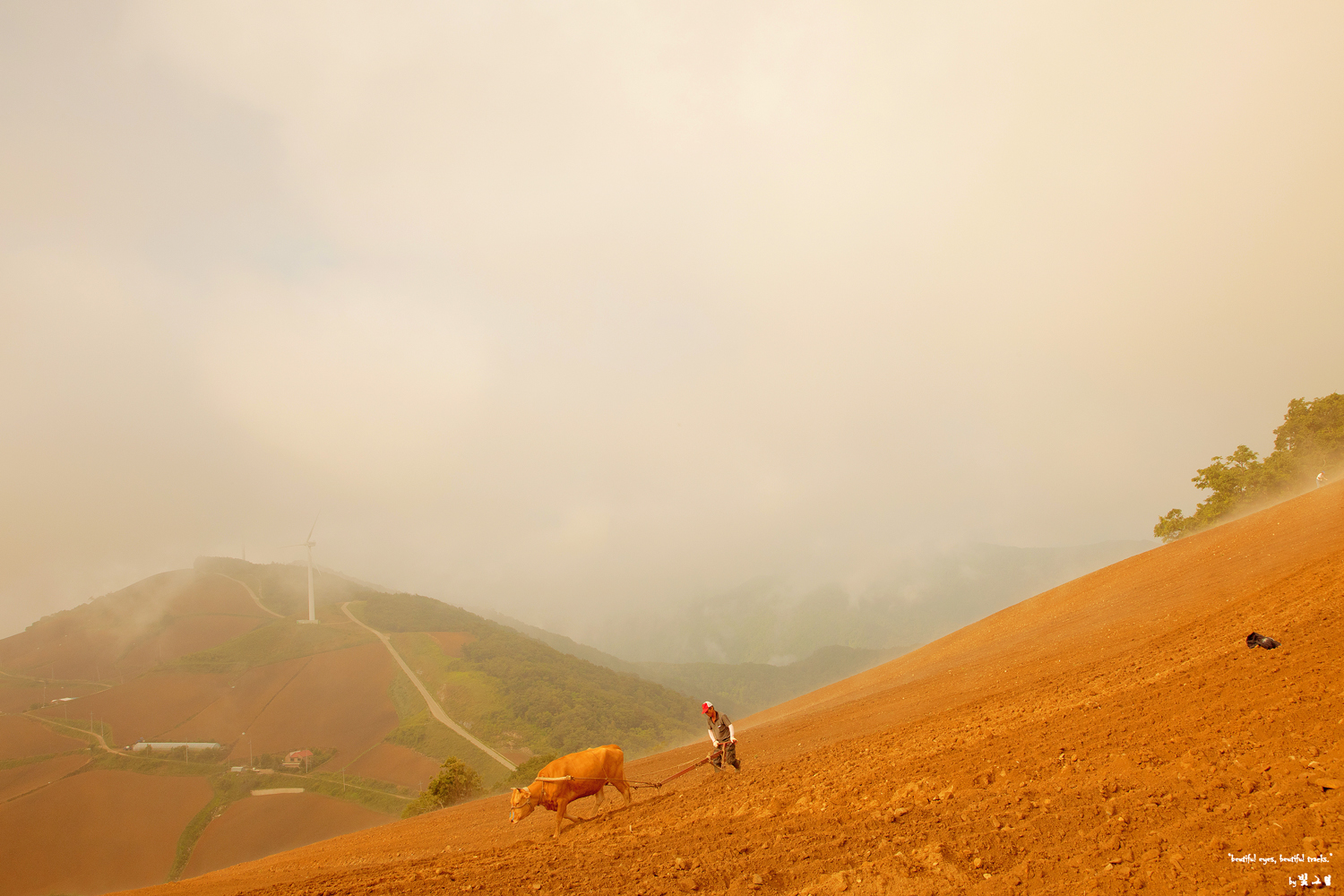언덕이나 비탈을 황소로 쟁기질을 합니다.