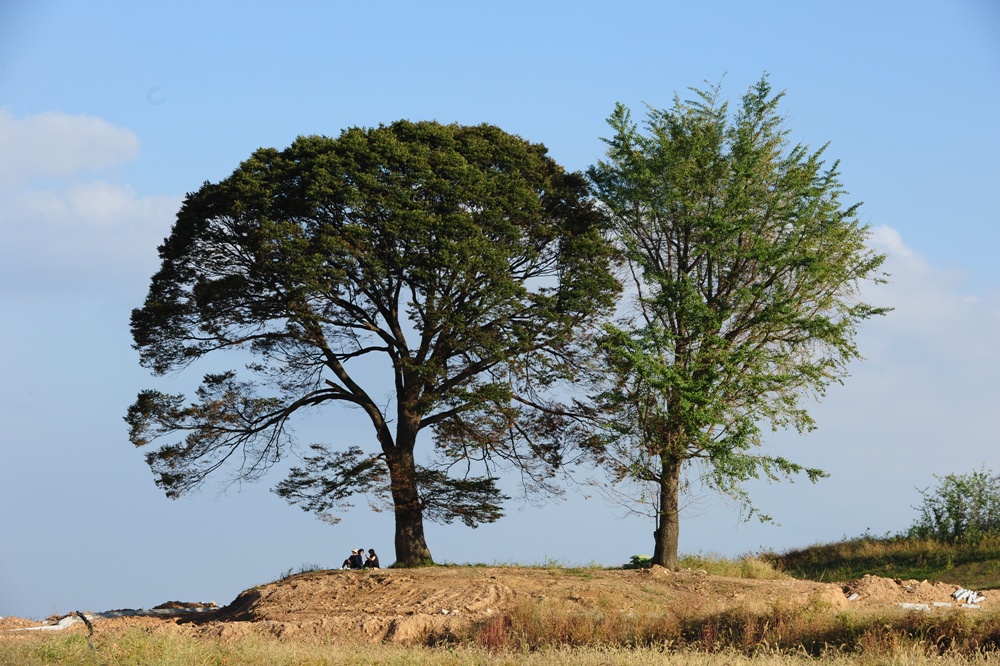 잘 생긴 두그루의 나무만이 덩그라니 언덕위에 서있다.