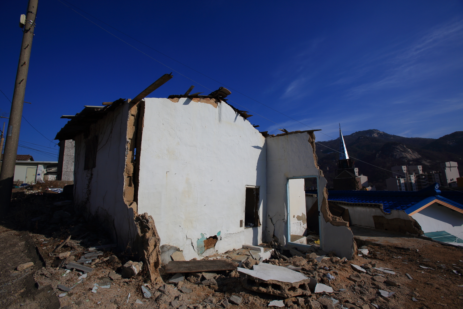 건물이 목조가 주 여서 이 주위의 마을의 달동네 맨 위쪽 마을집은