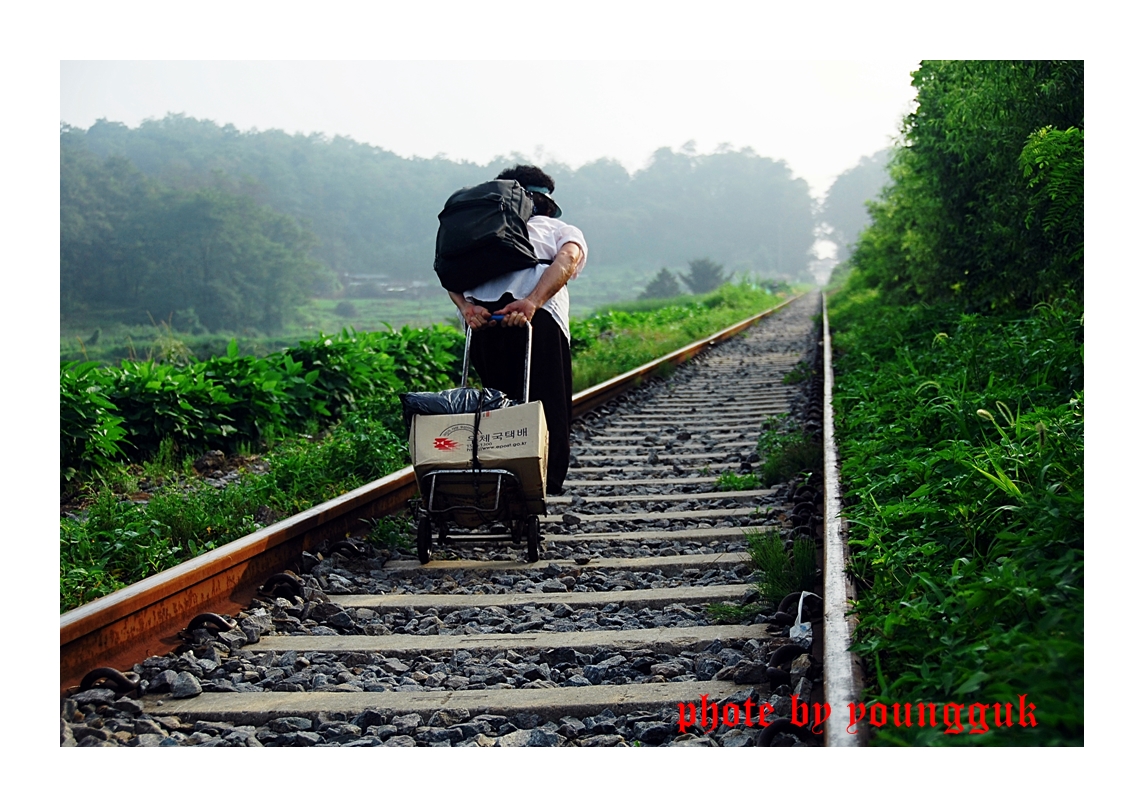 힘든 짐을 지고 끌고 가야할 인생길 끝은 어디인가?저 맞닿을수 없는 철길처럼....