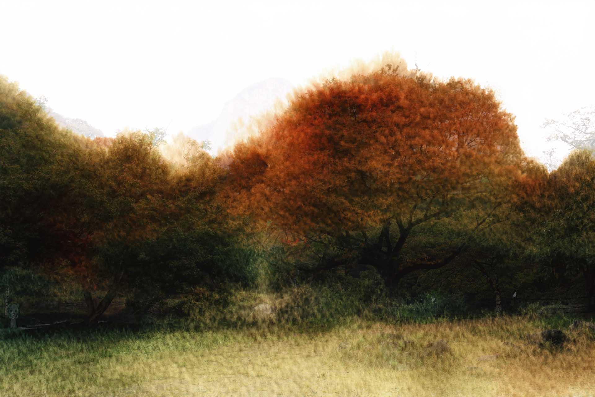 백양사 배경에 서남초교 느티나무를넣고 수채화를 만들어 봤습니다