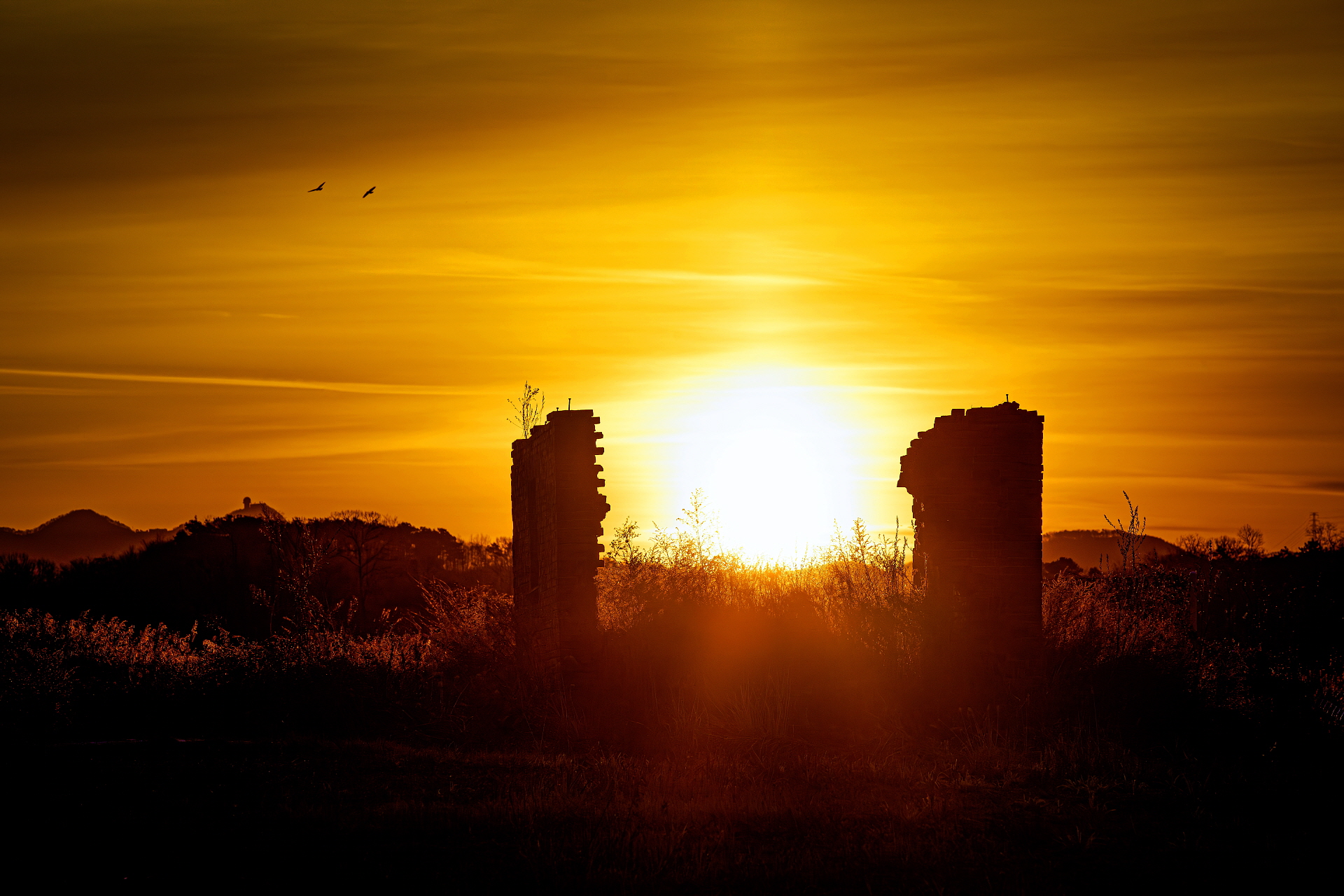 쓰러져 가는 폐건물 위로