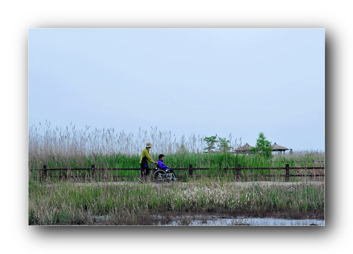 거동이 불편한 노모를 모시고 생태공원을 산책중입니다.