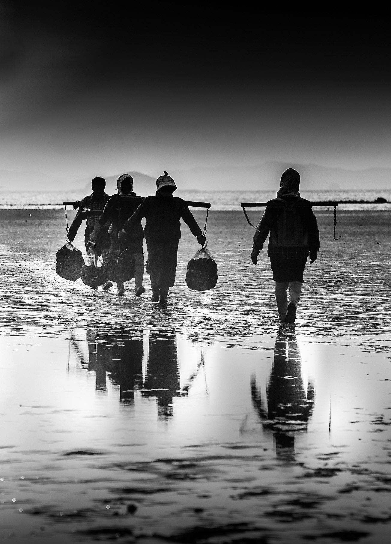 두 어깨에 굴을 가득 메고 오는