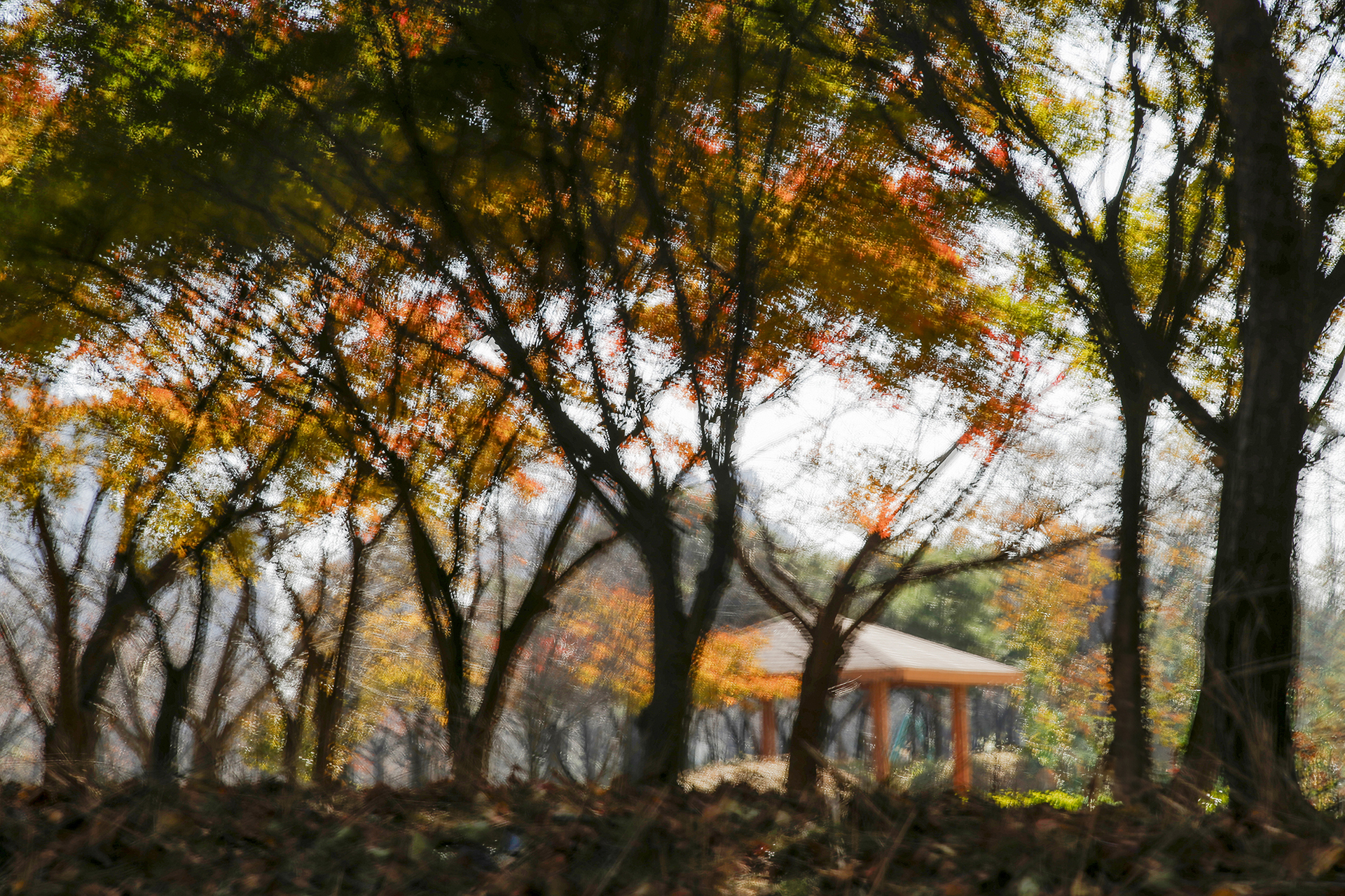 화사한 가을빛이 숲이 우거진 공원으로 들어와 머물렀습니다.