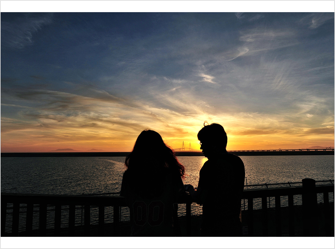 인천대교에 석양이 물들 때....