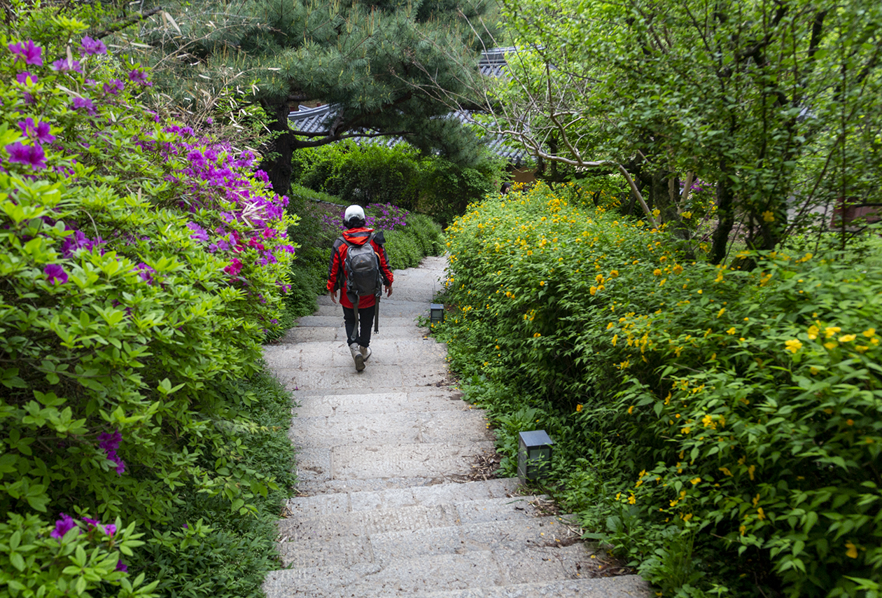 꽃길을 걷는 여인