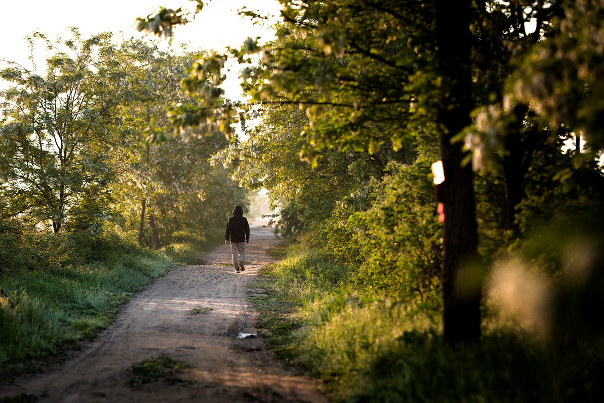 이슬을 머금은 아카시아 꽃길을 걷는 분이 있네요.