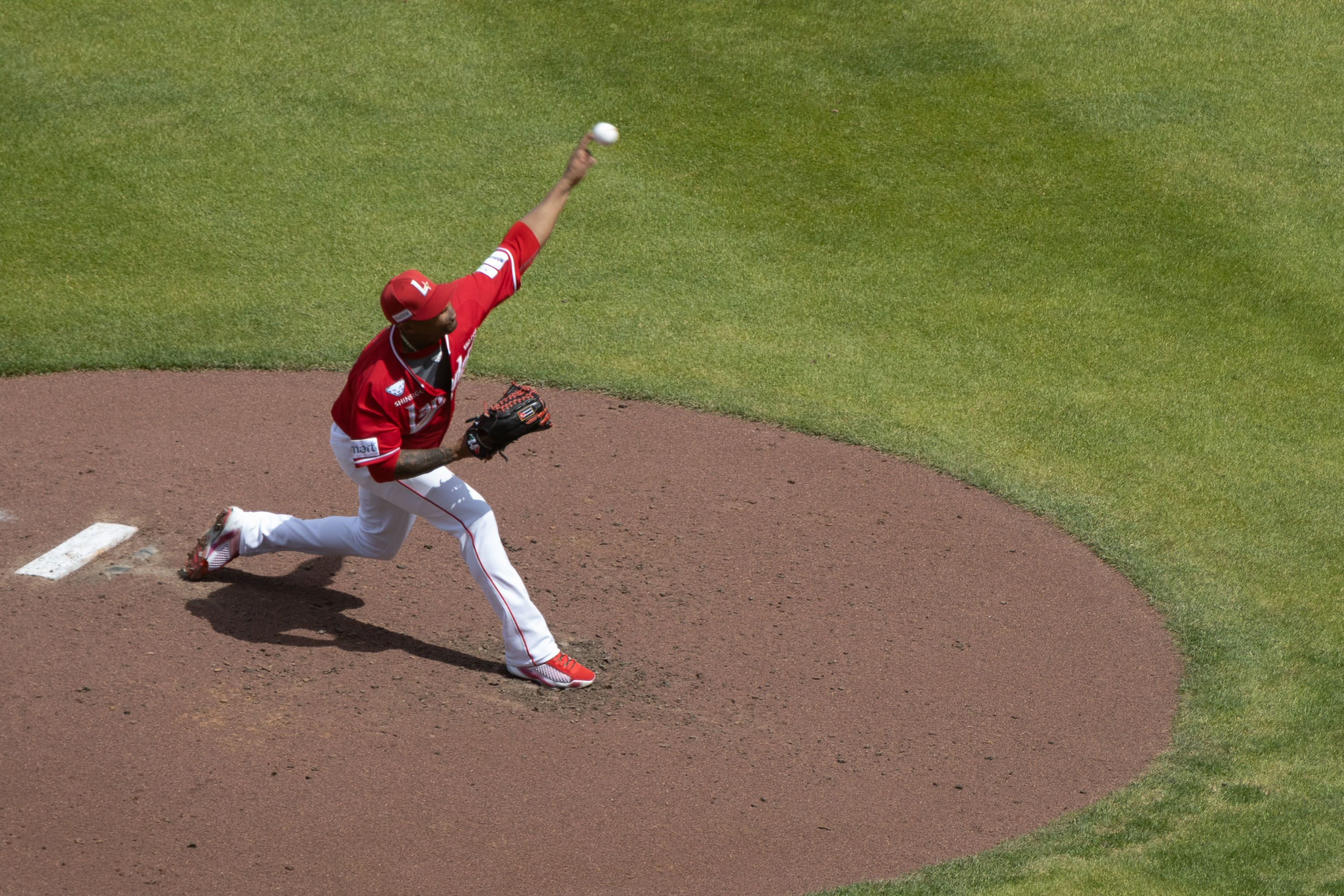 SSG 랜더스프로야구단 용병 엘리아스의 투구모습입니다,