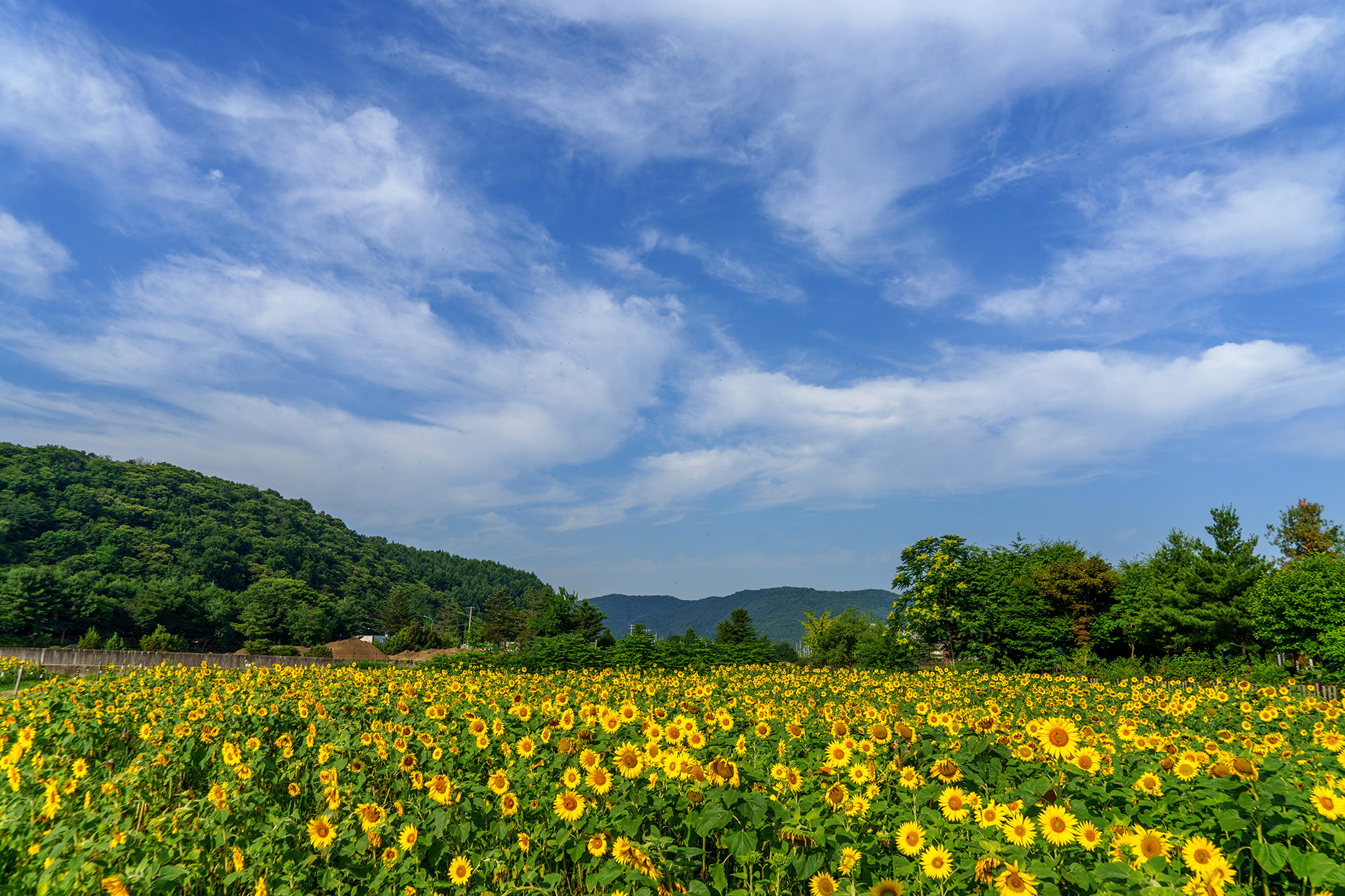 키작은 여름 해바라기가 가득 피어 있었어요.