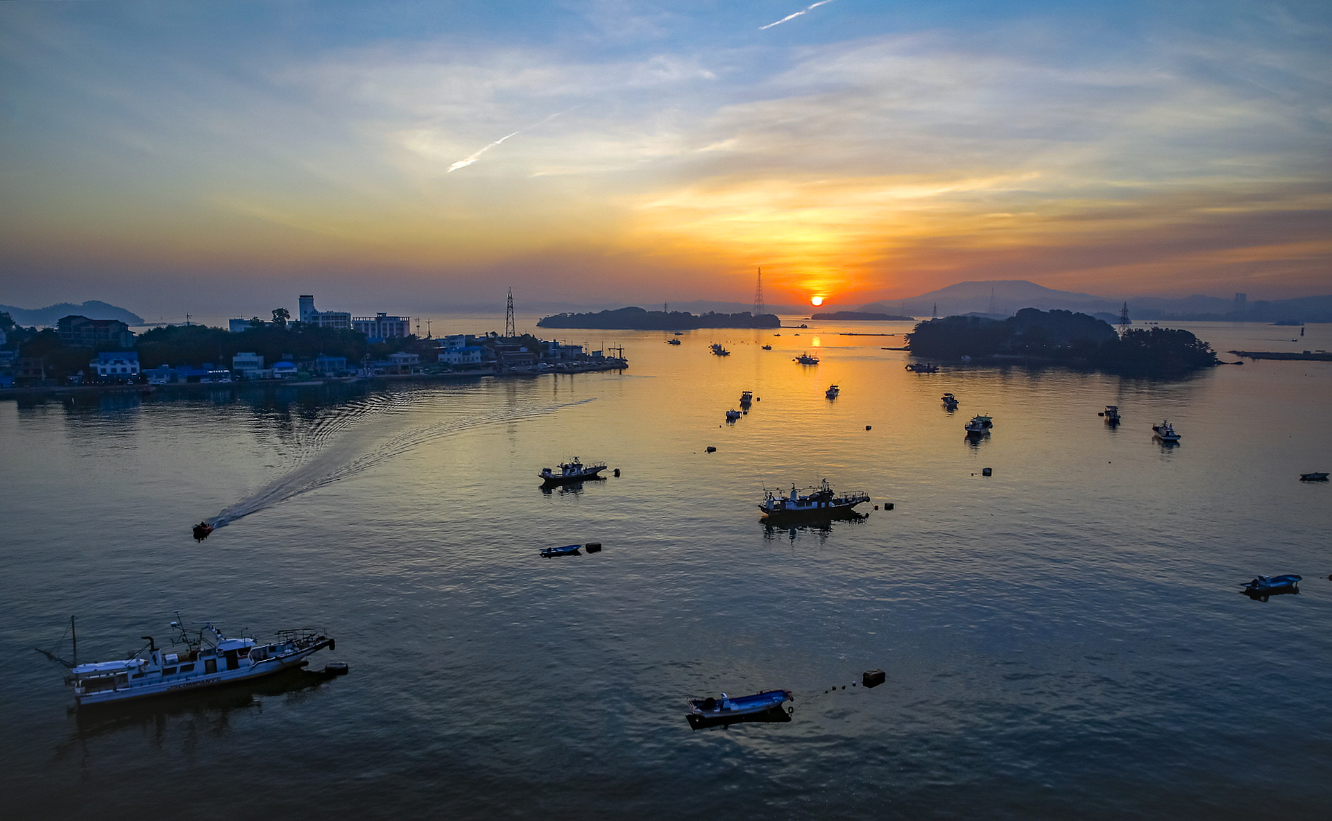 원산안면대교 위에서 찍은 일출 모습입니다.