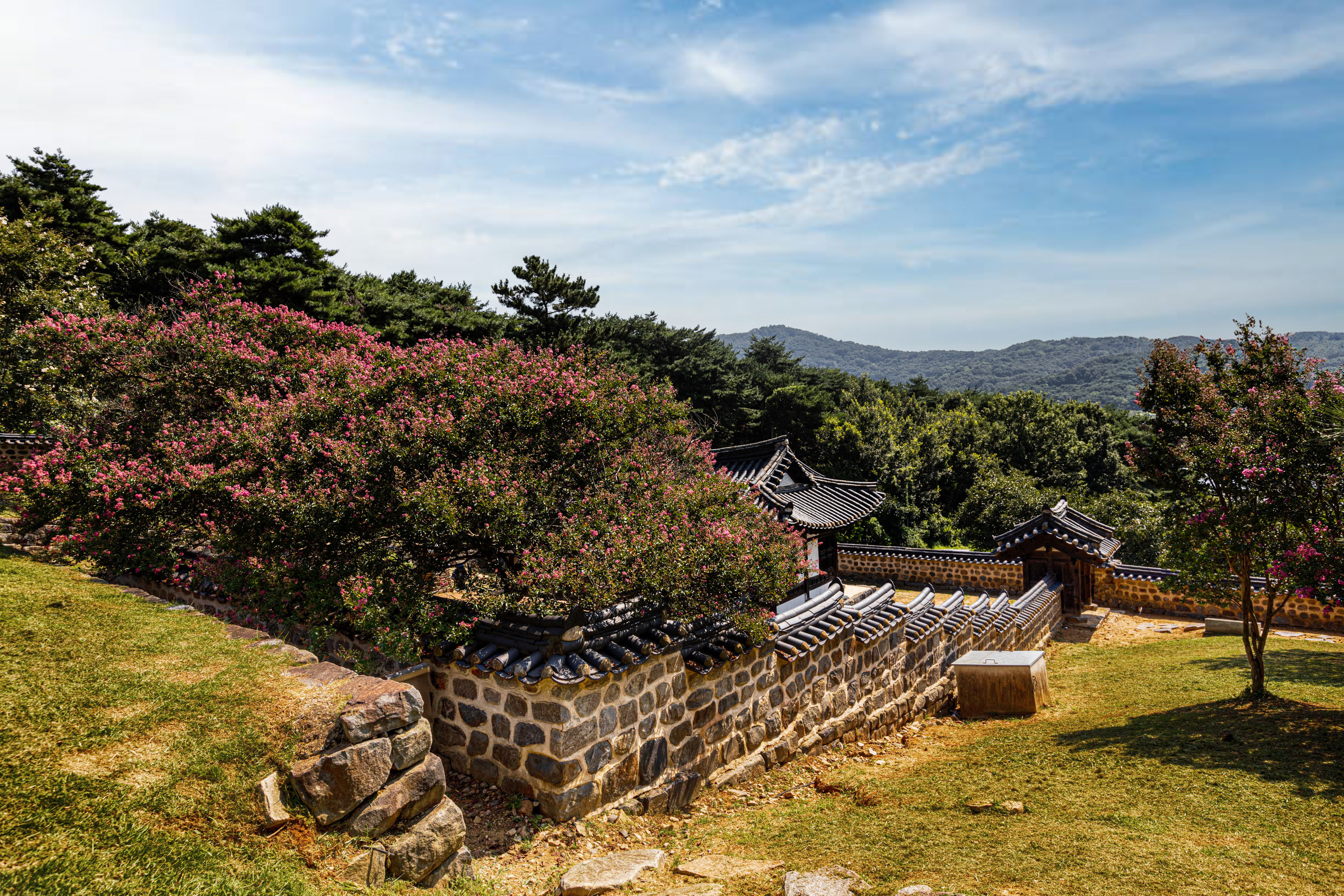 정면으로 아름드리 배롱나무가 반겨준다
