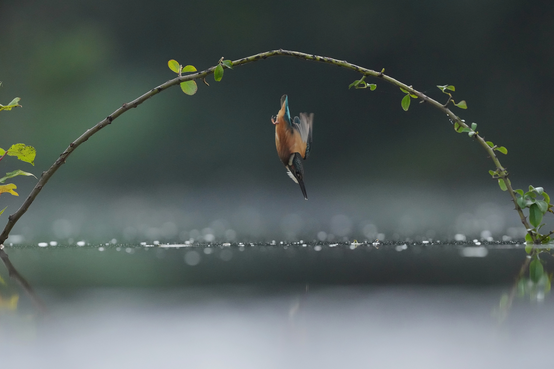 물총새 유조가 한참동안 망설이다 용기를 내어 힘차게 점프를 한다...