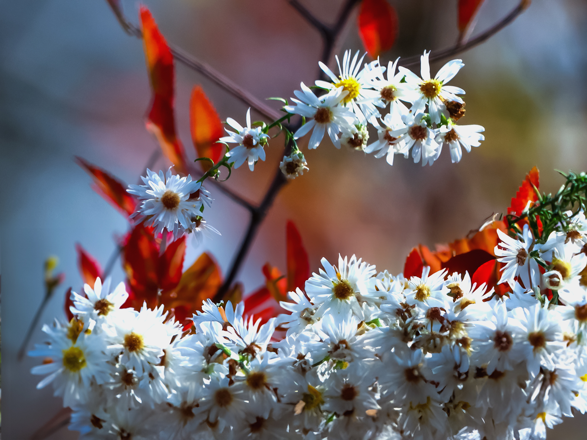 발전소옆 뚝방위에서 단풍과 어우러진 야생 들국을 찍어봤습니다 향기가 그윽 했습니다
