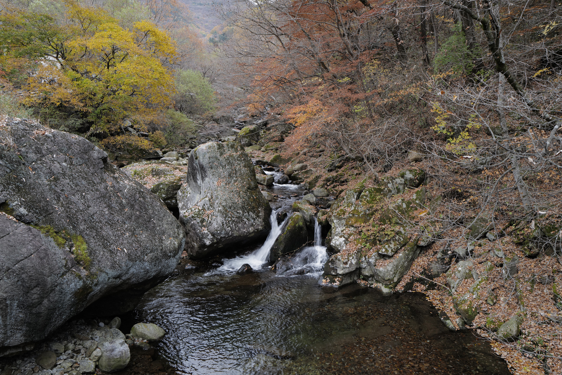 단풍과 어우러진 지리산 뱀사골 계곡입니다.