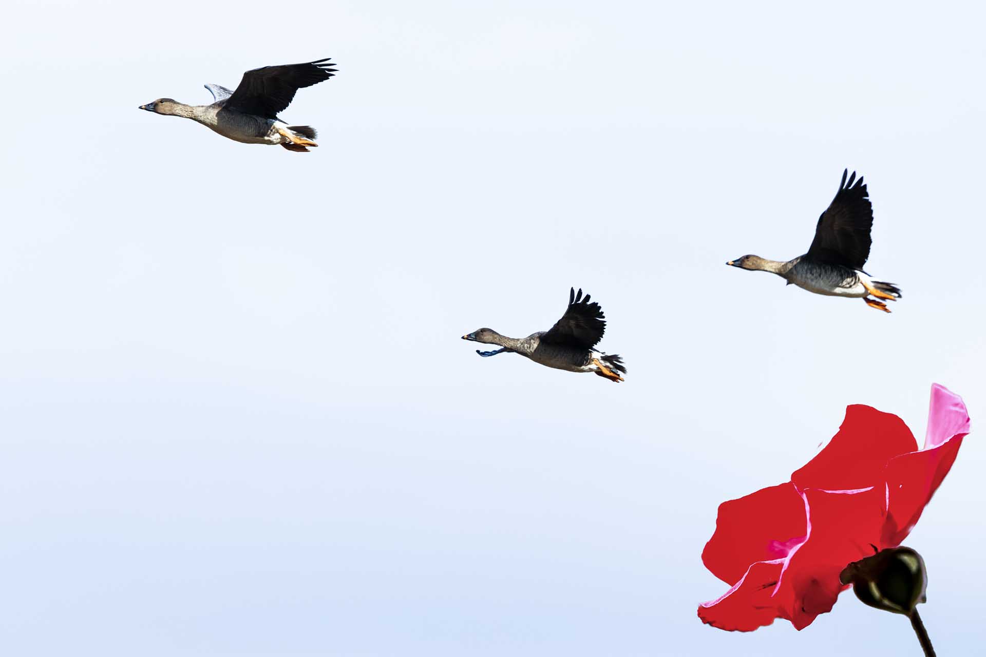 날으는 기러기에 늦가을 장미를 넣어 보았습니다