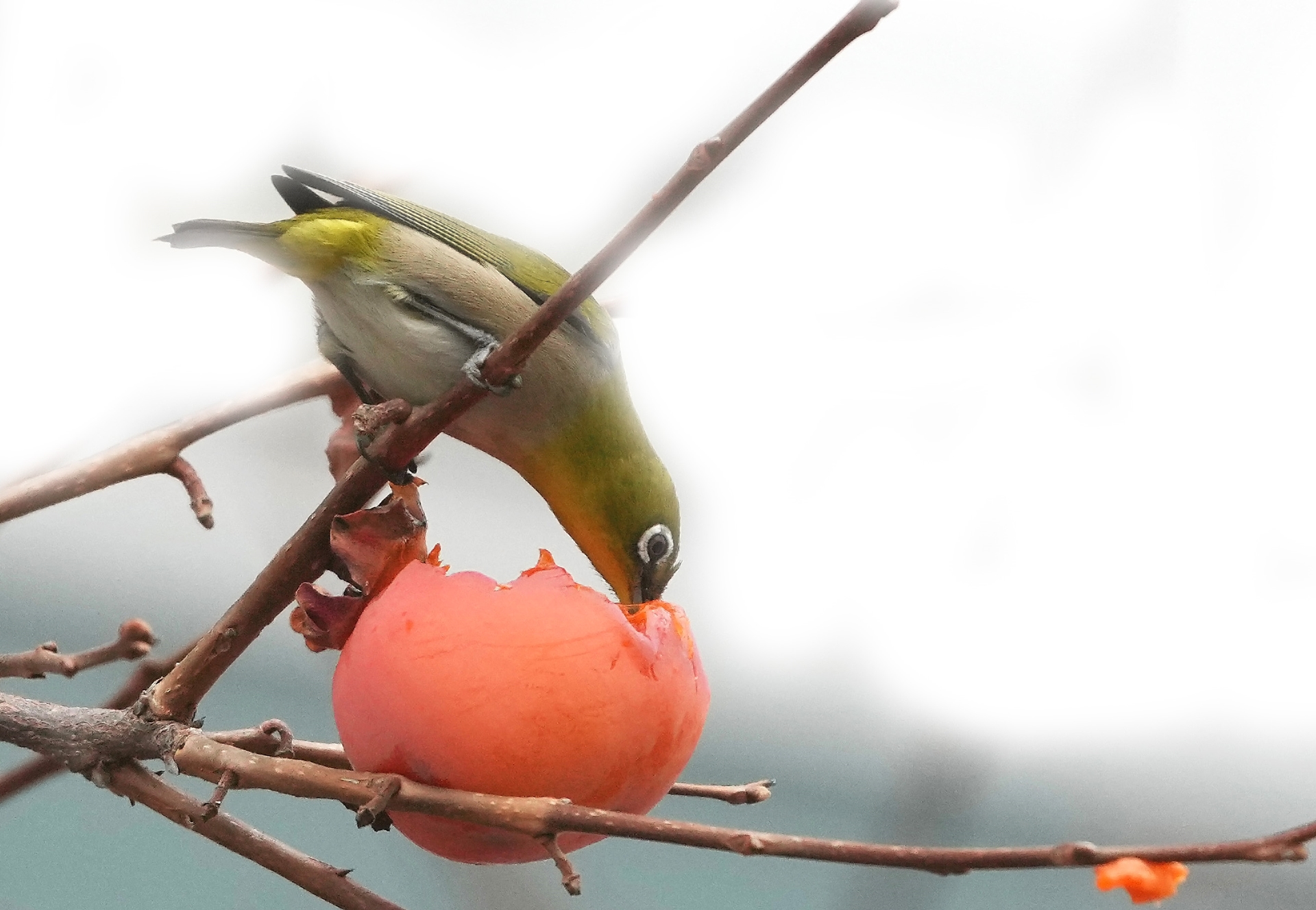 홍시 먹는 동박새