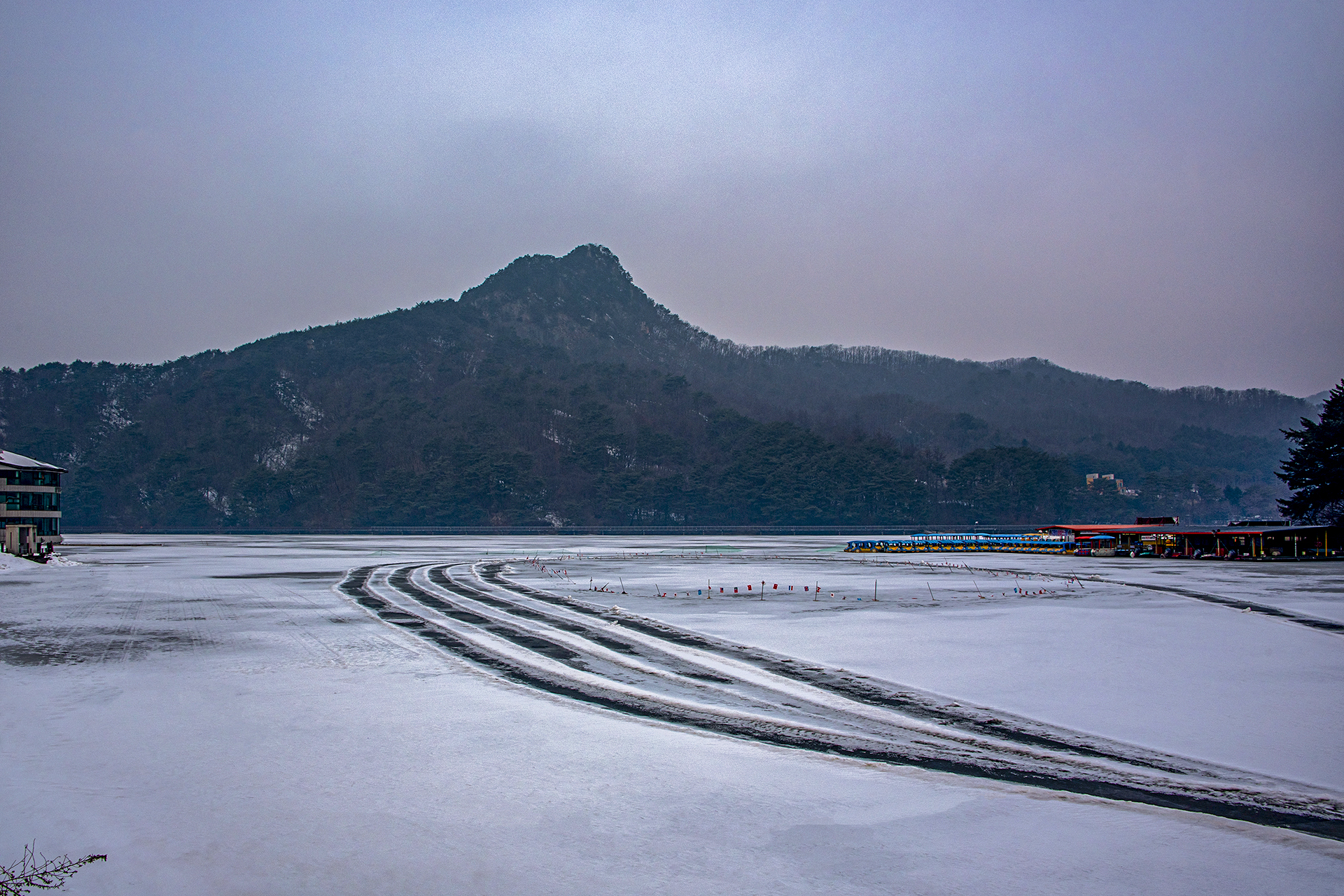 겨울 한파에 꽁꽁 얼어버린 산정호수 모습