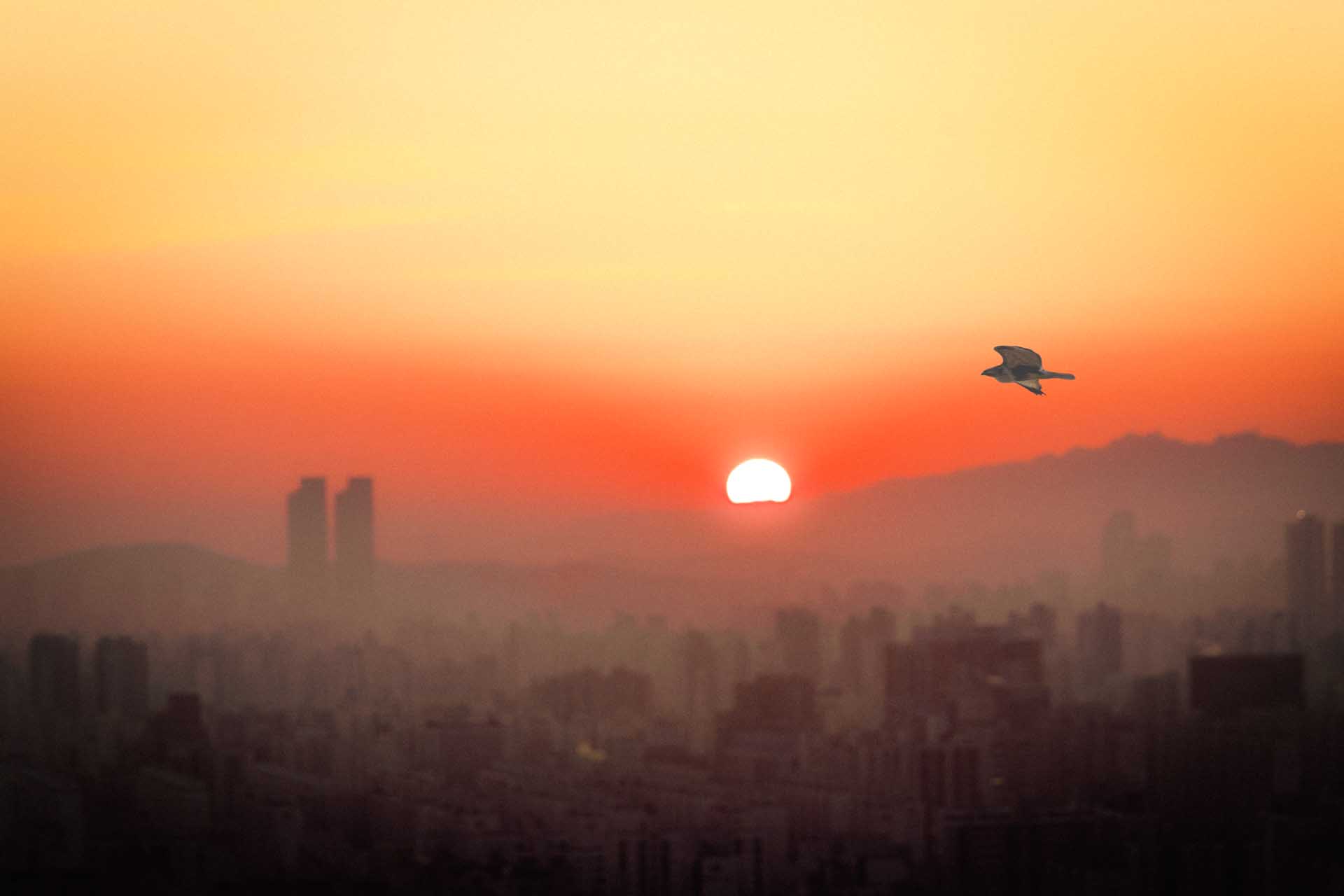 원적산에서 일출을 찍었습니다 말똥가리를 넣어 봤습니다 ㅎ
