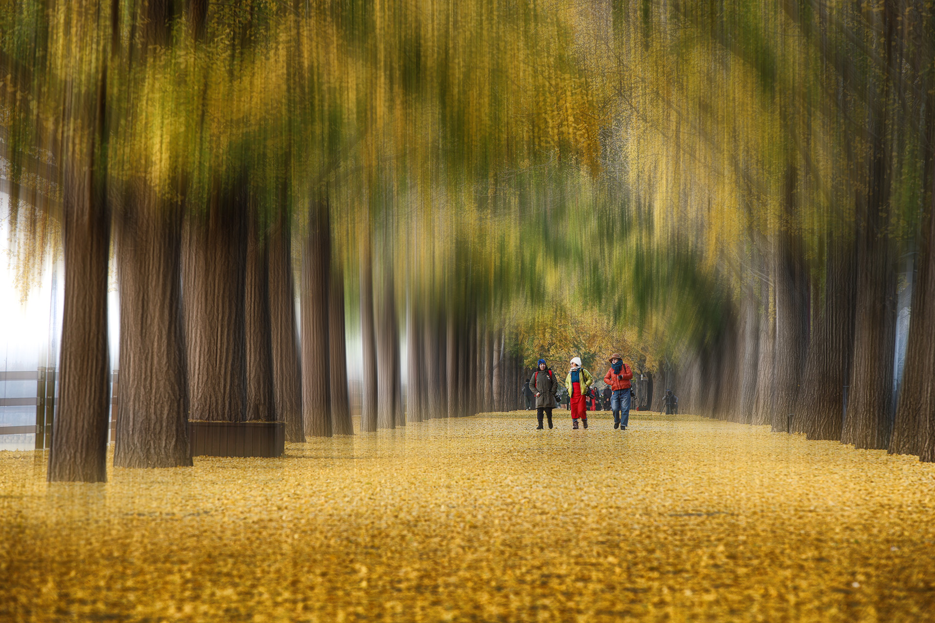 노랗게 물들어 황금빛으로 빛나는 자연속 추억의 길...
