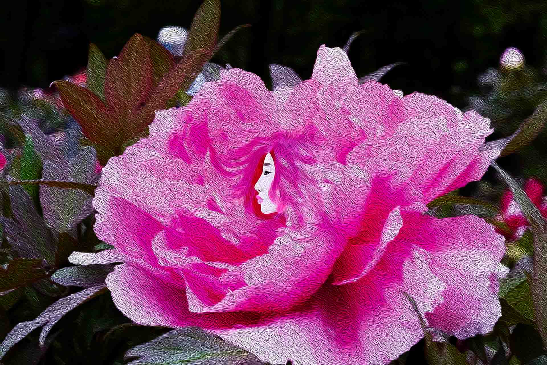 목단속에 여인