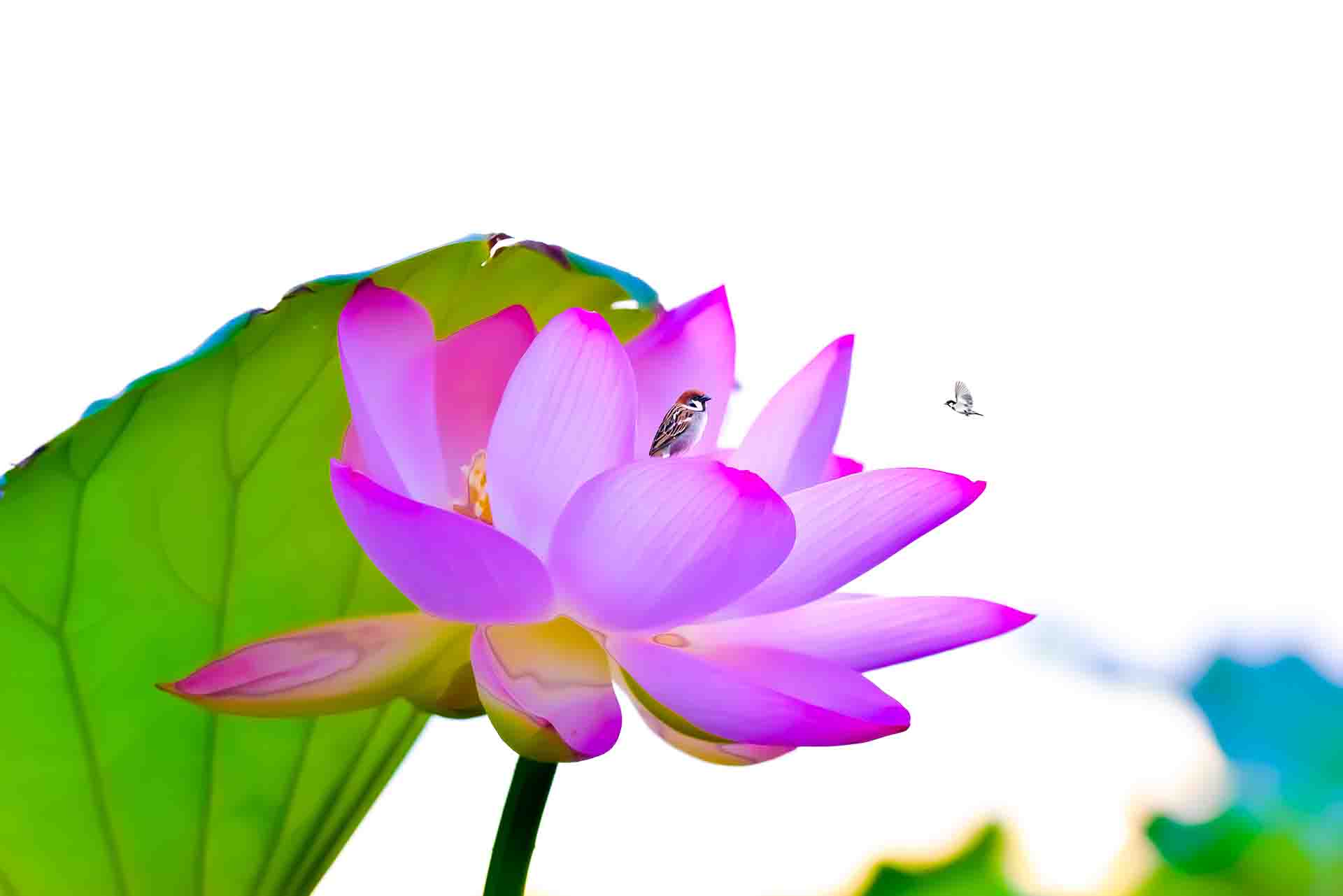 연꽃속에 참새