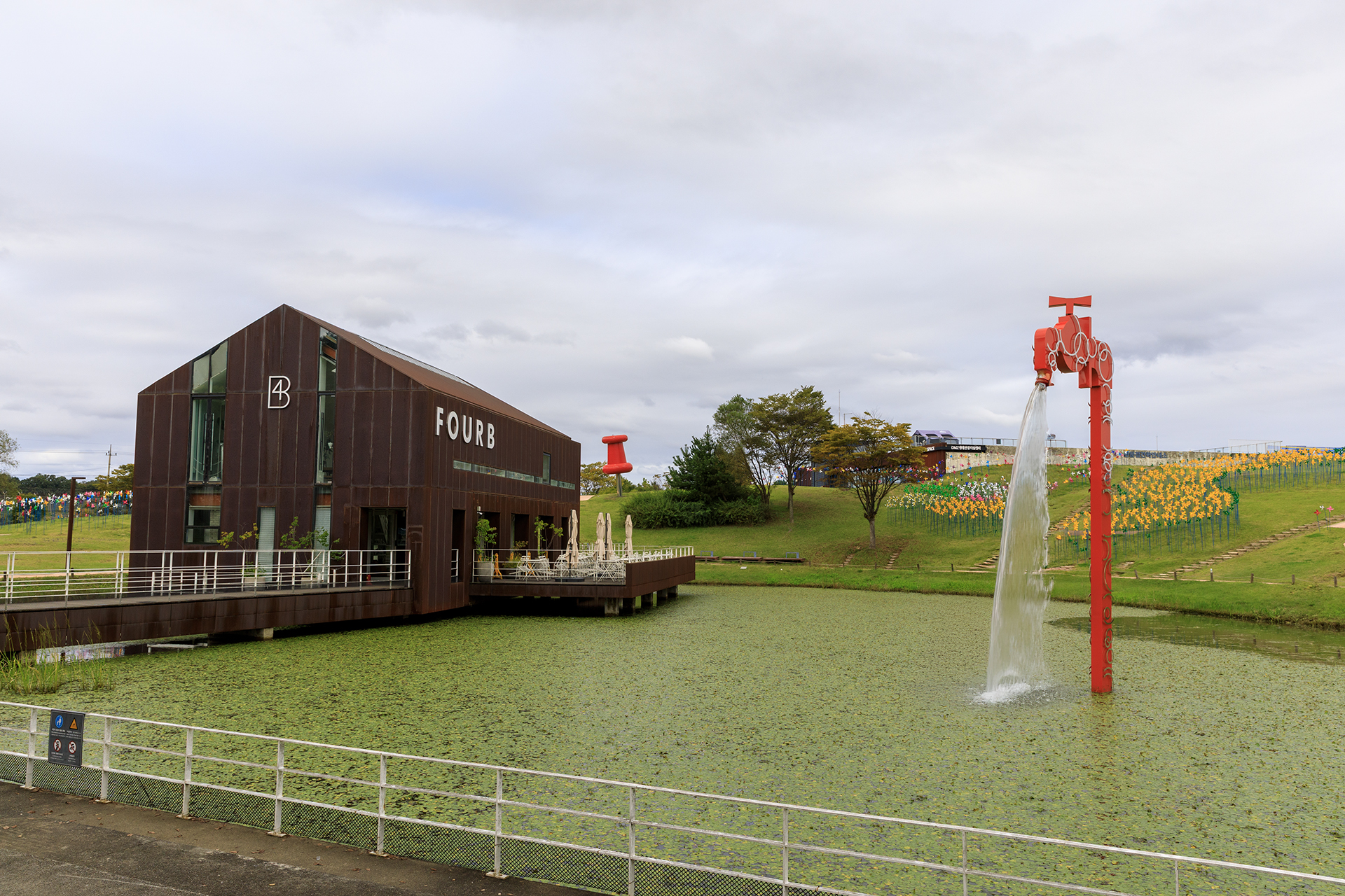 커다란 수도꼭지에서 물이나와 연밭을 채우는 상상을 해봤어요