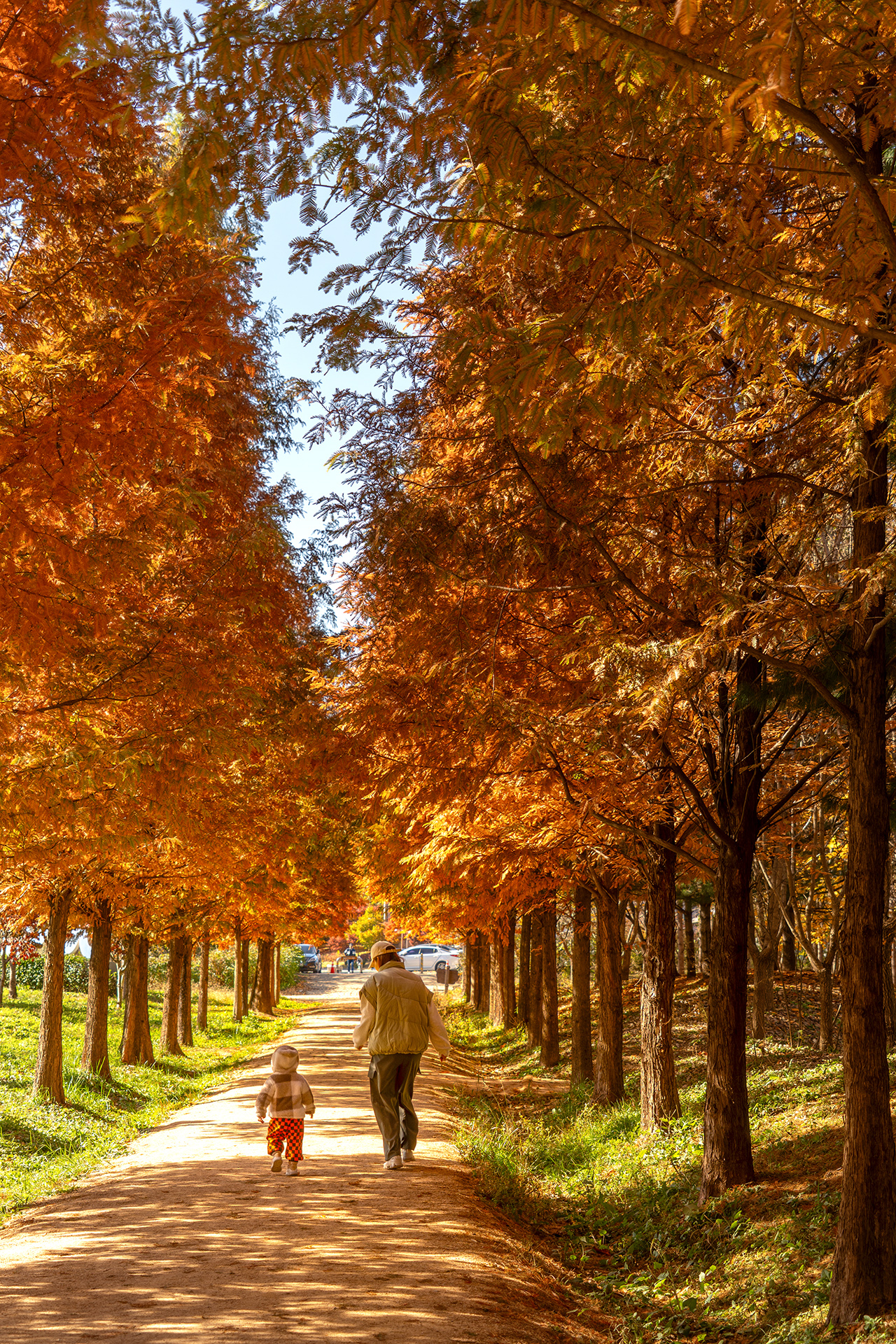 아장아장 가을길을 걸어가는 아이와