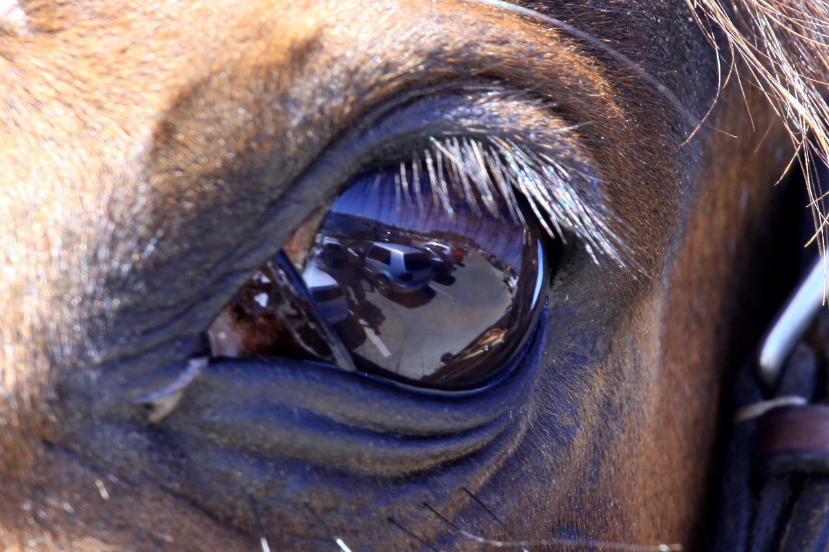 말의 시선속에 비치는 차량들