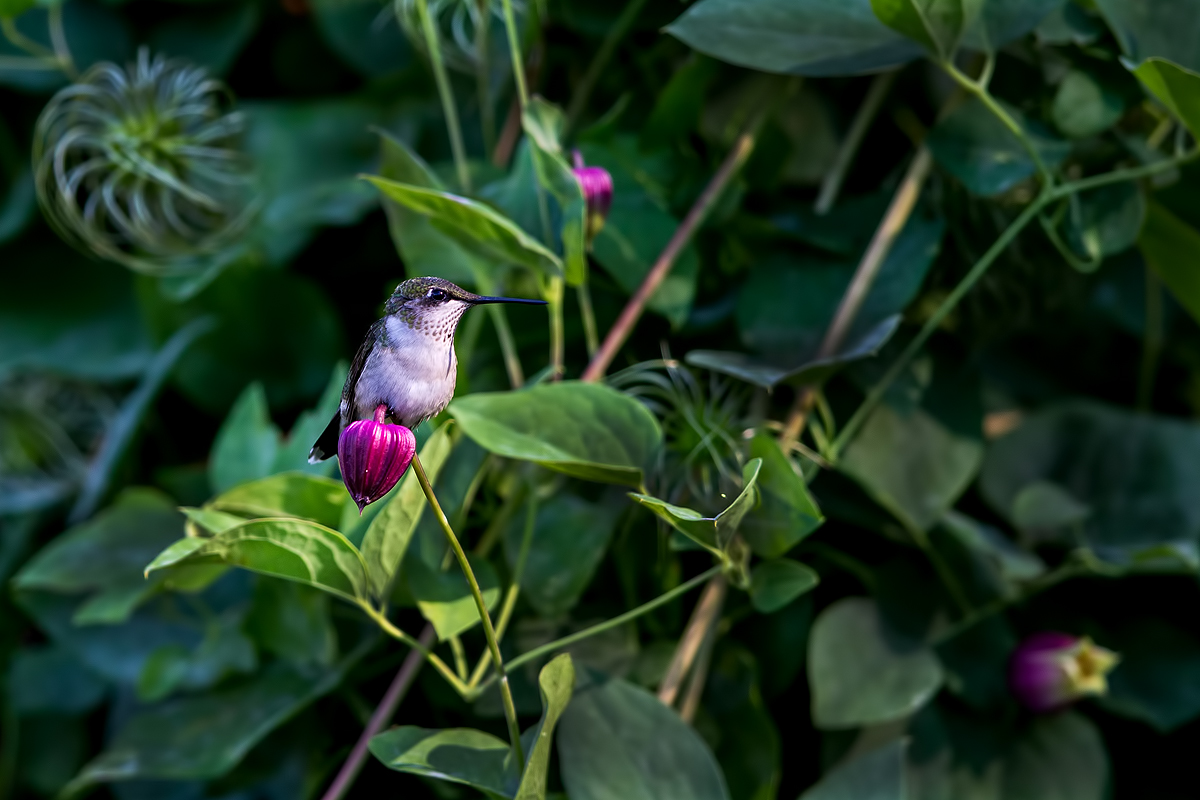 작은 꽃 한 송이에 올라 앉은 벌새의 모습은 마치 꽃의 요정같아 보였습니다