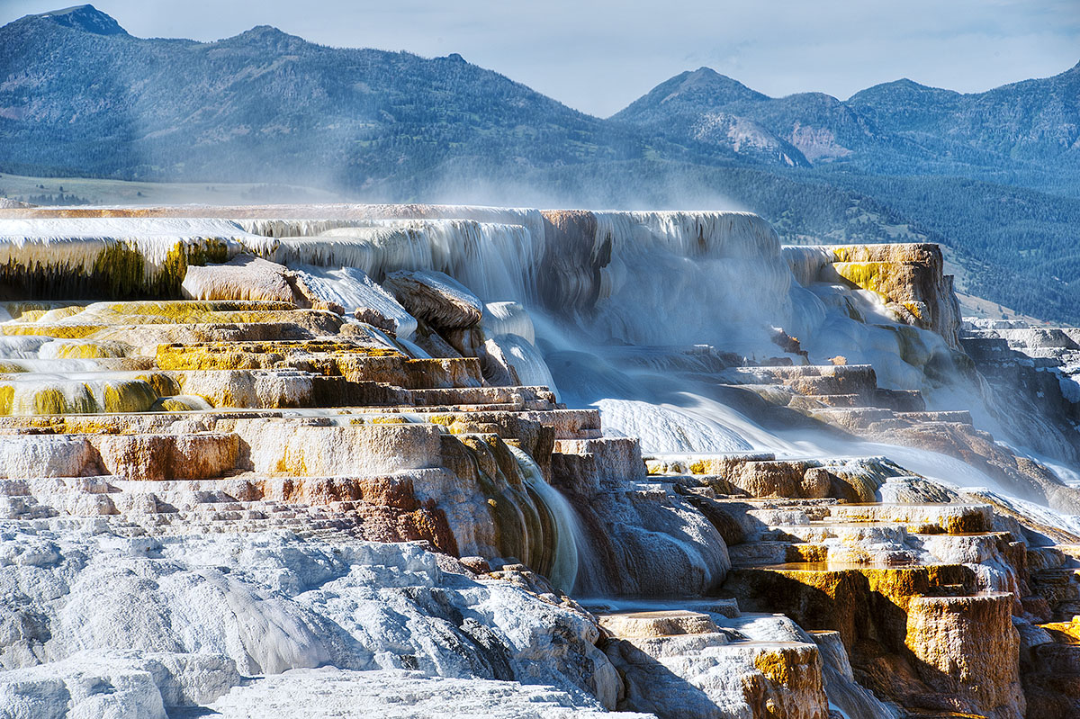 유황온천 내 (냄새) 물신 나는 곳, ㅡ Mammoth Hot Springs (Yellowstone 굴립공원) 입니다.