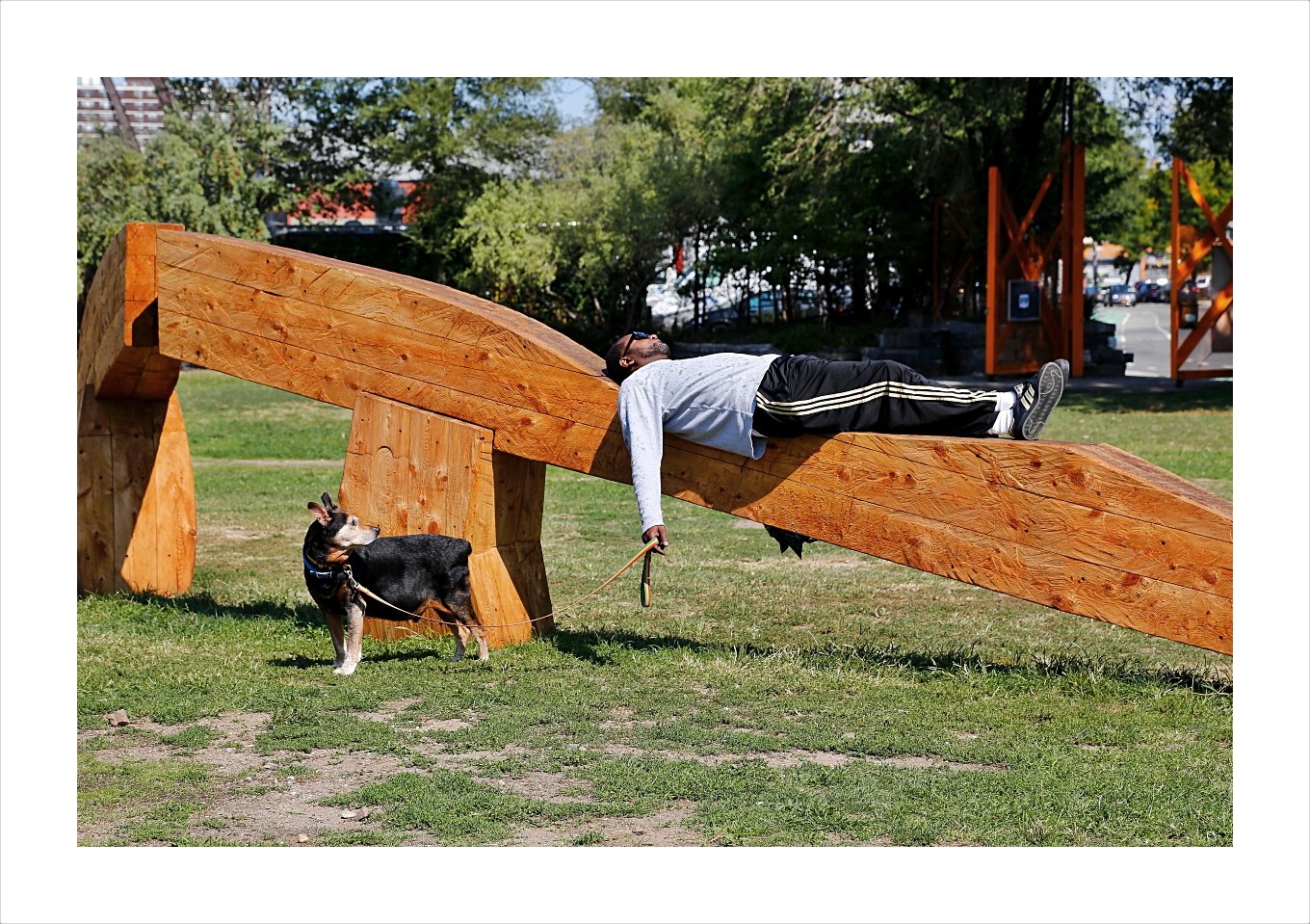 산책 나와 오수만 즐기고있는 주인을보며 도그가 한마디 합니다