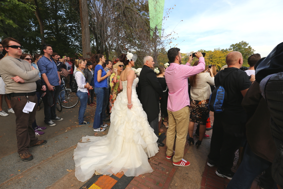 결혼사진 담으러 왔다가 영화촬영 구경에 신이난 신랑신부