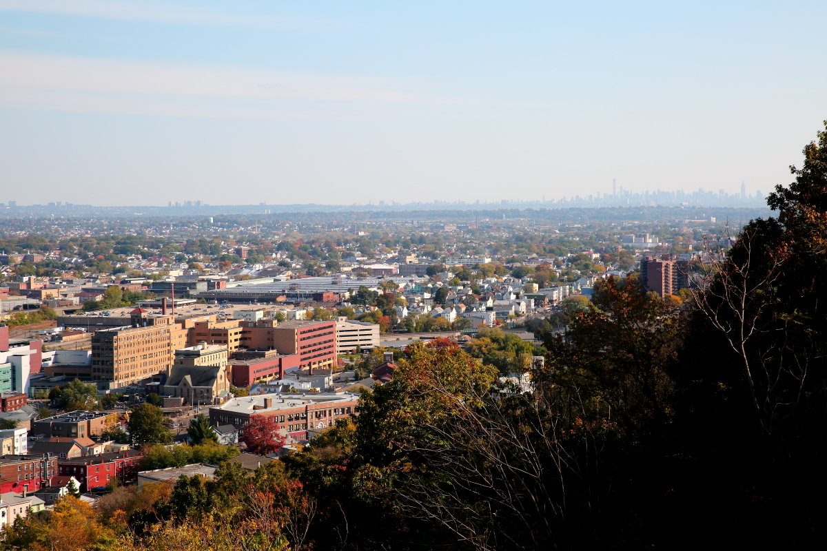 높은 언덕에서 내려다본 시가지 전경.