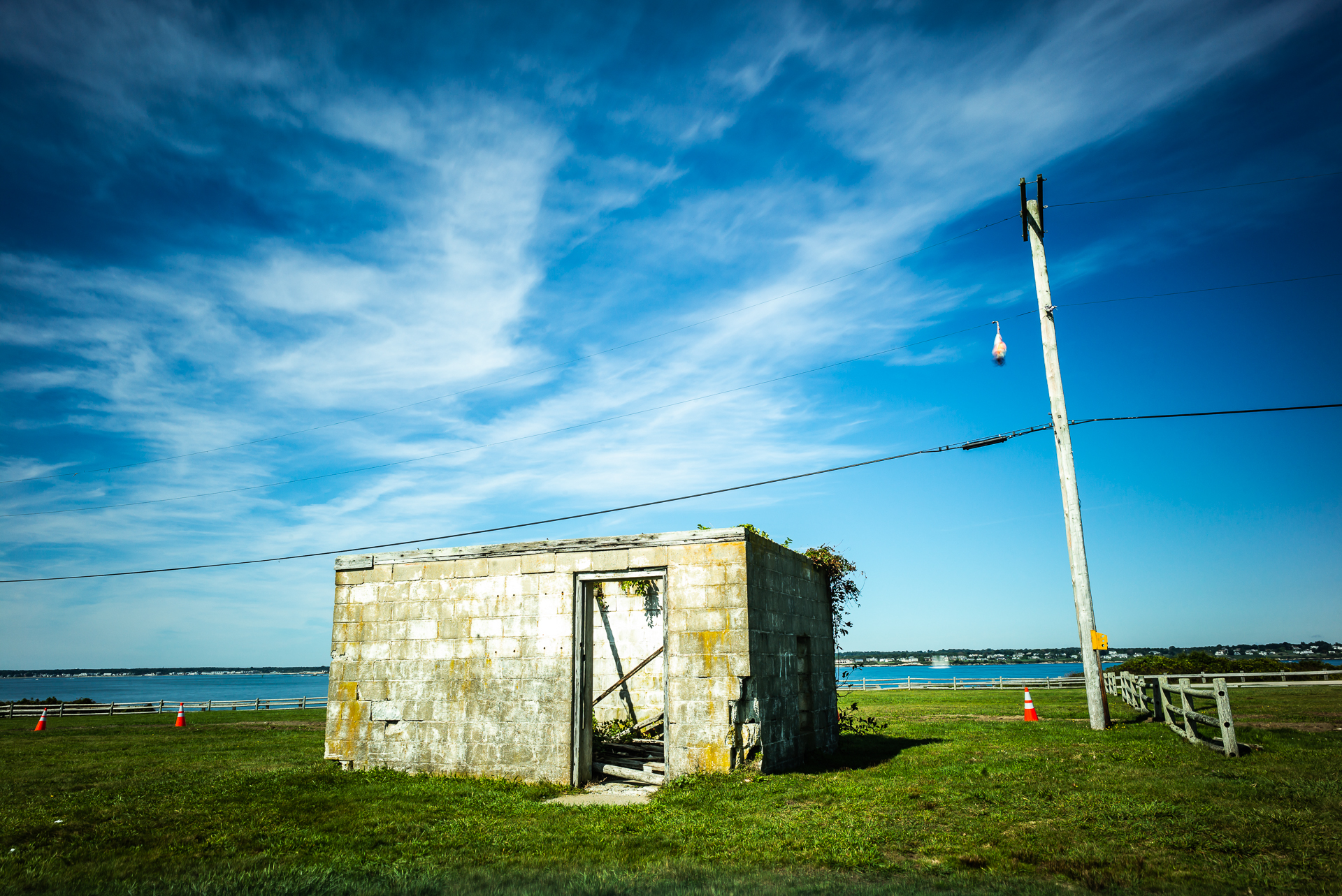 전봇대를 친구삼아 하염없이 바다만 바라보고 있다